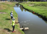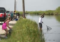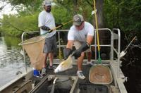 Louisiana Department of Environmental Quality environmental scientists Corey Schwartzenburg and Carrick Boffy collects fish for mercury testing in the Atchafalaya River basin June 1, 2016.
