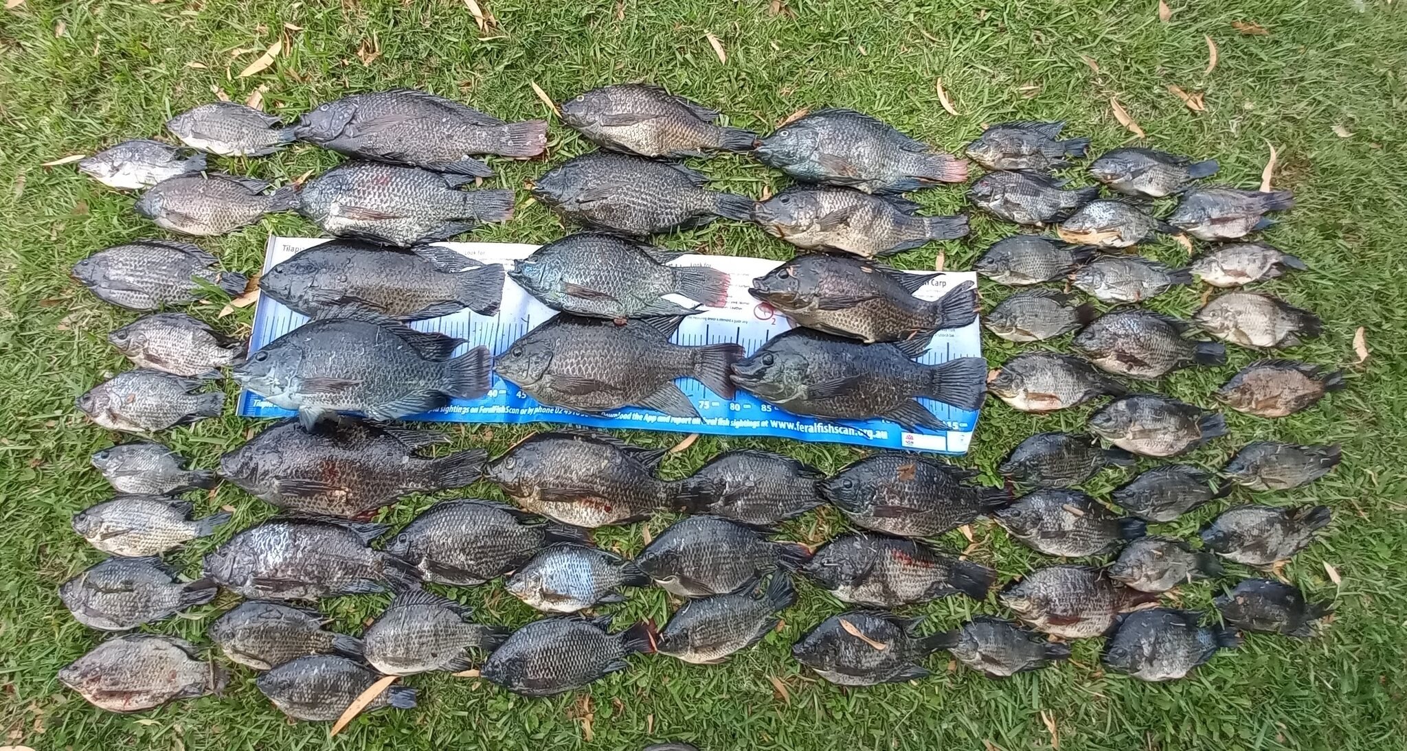 Gold Coast City councillor Hermann Vorster and the Gold Coast Fishing Fanatics club host an annual pest fishing competition, removing as much as a tonne of tilapia and carp in one day.