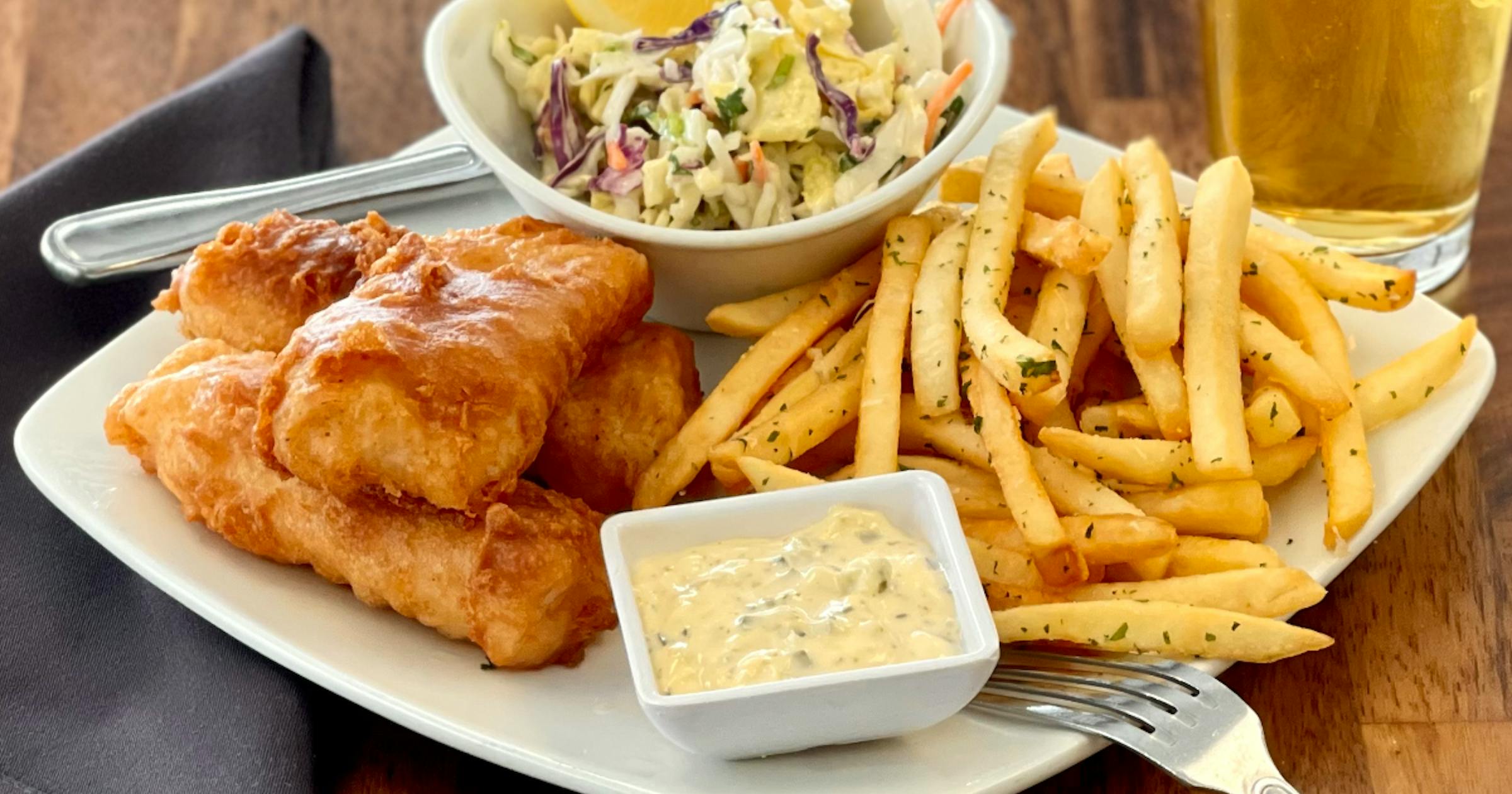 The fish-and-chips here is Alaskan pollock loin fried in a house Pravy Pilsner beer batter and served with seasoned hand-cut fries ($17). 2716 E. 38th St., Mpls., 612-208-1450, northboundbrewpub.com
